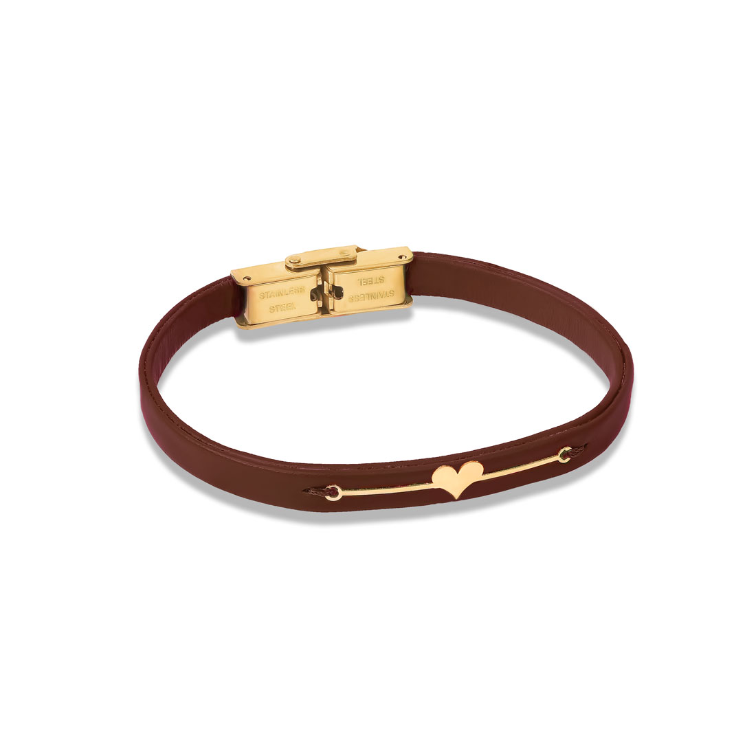 دستبند طلا قلب توپر زرشکی و چرم با طول پلاک 3.5 سانتی متر