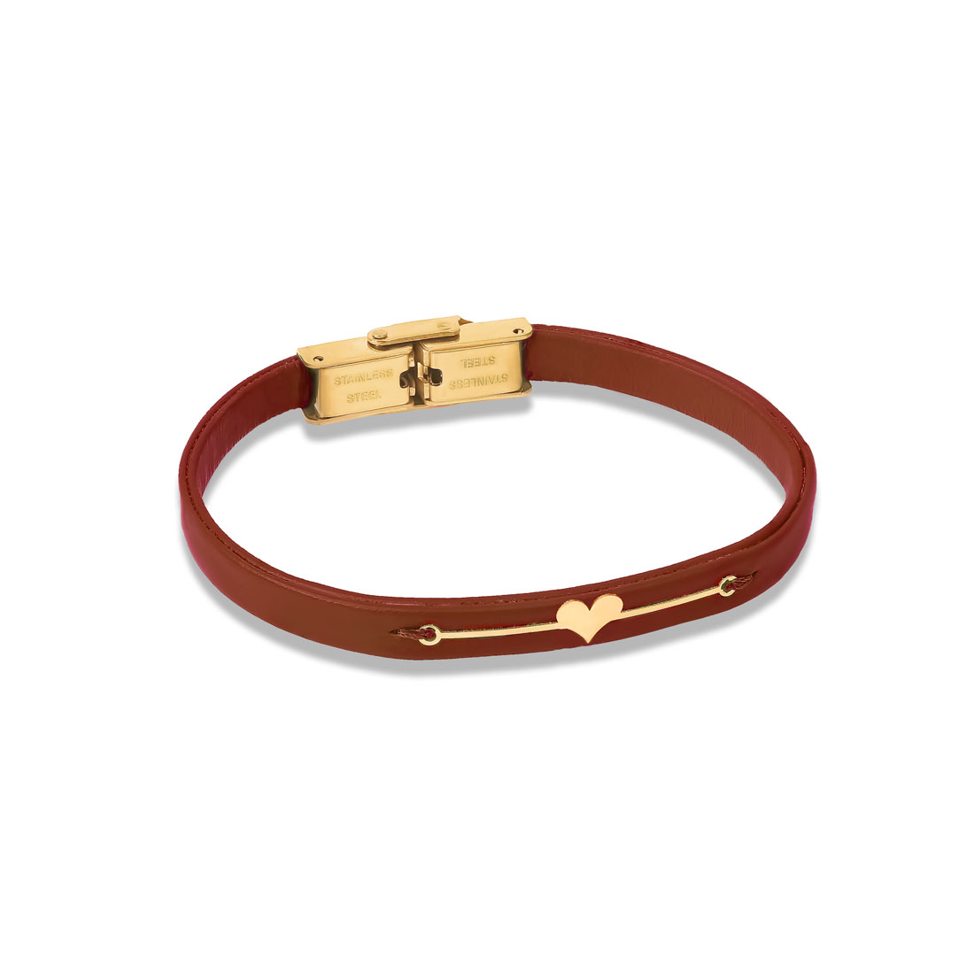 دستبند طلا قلب توپر قرمز و چرم با طول پلاک 3.5 سانتی متر