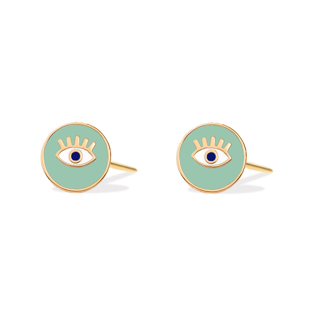 گوشواره طلا دایره چشم فیروزه ای با طول حدود 1 سانتی متر